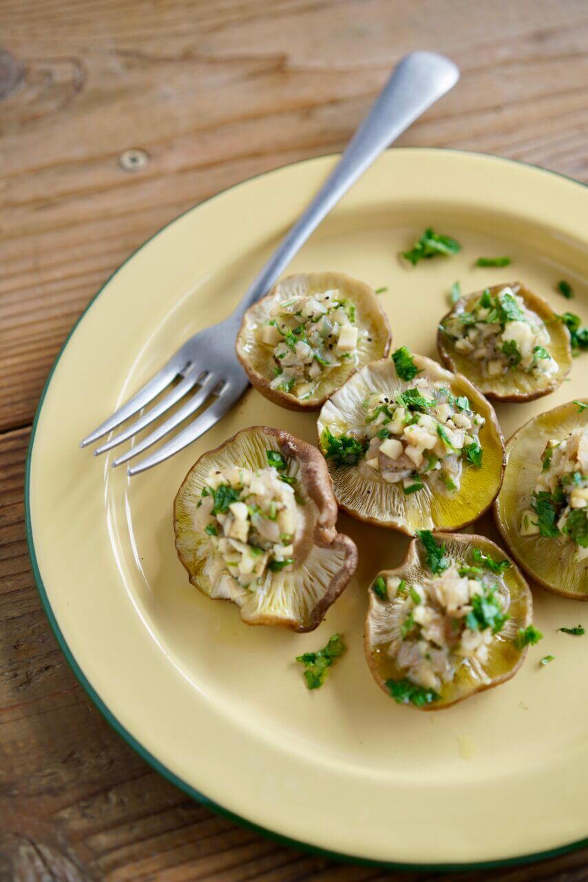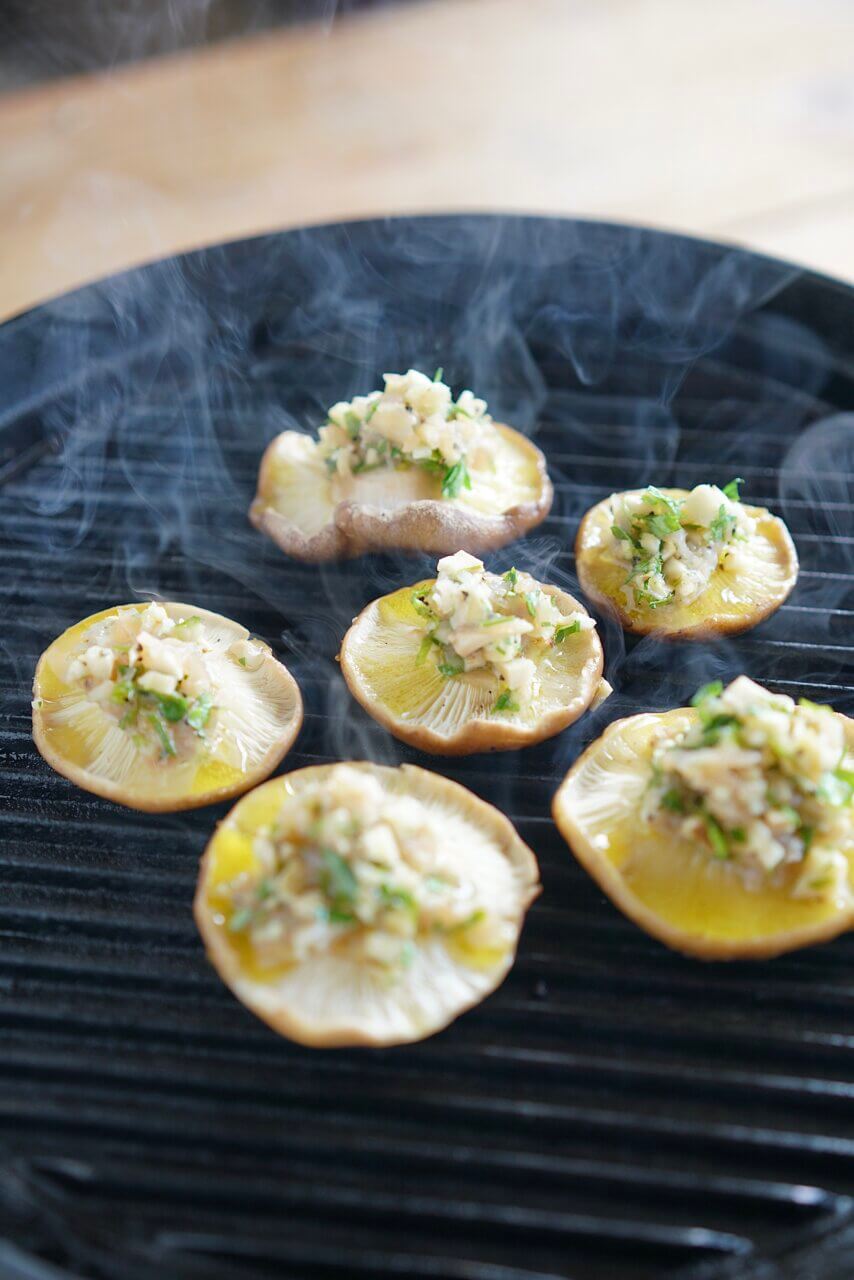 今回は、椎茸の軸と生ハム、ニンニク、イタリアンパセリなどをオリーブオイルで和えたものをのせて焼いてみました。椎茸の風味が強く、主役級の一品になります。また、マッシュルームのようにポタージュスープにするのもおすすめです。