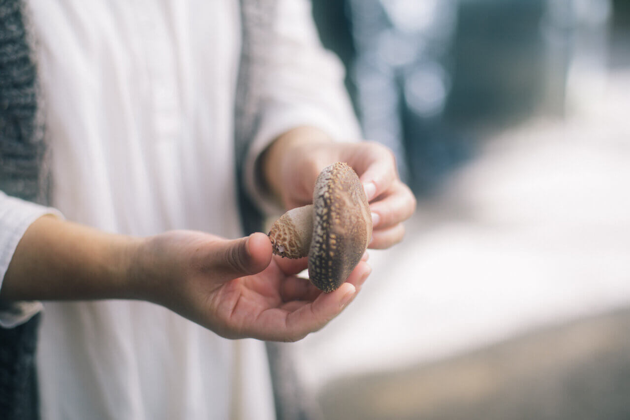 そんな“山の人”としても有名な楠本さんは、クヌギなどの雑木に菌を打ち込んで育てる原木しいたけにこだわって栽培しています。